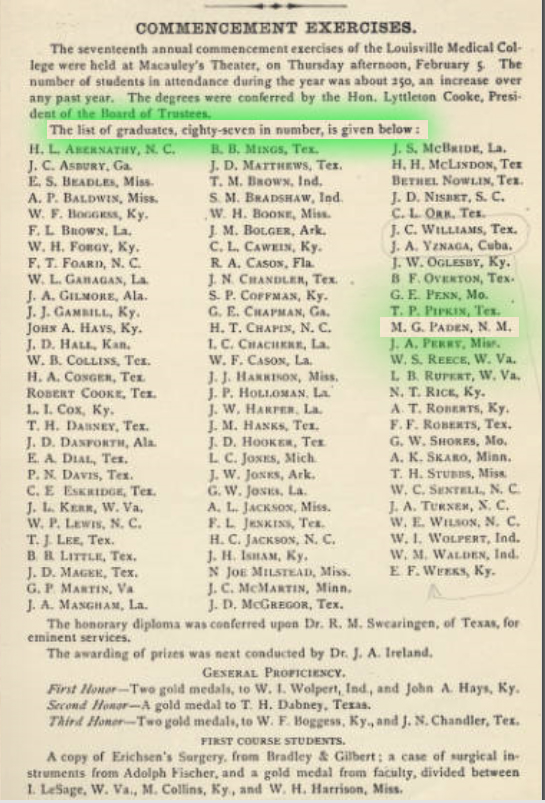 - Feb 6, 1886: Paden Graduates Medical School